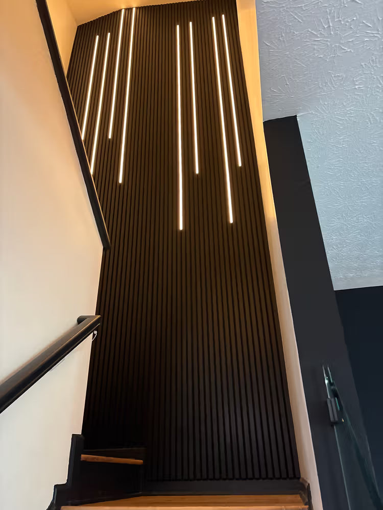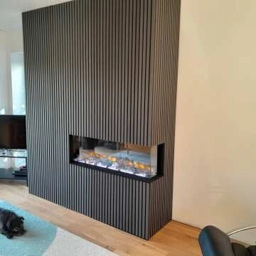 These luxurious black oak panels add to our home office the perfect balance of texture and tone. The slats feel fresh and natural, while the gray felt backing adds depth and a calm elegance. Installation was easy and the panels instantly improved the appearance and acoustics of the room. It now looks like a professionally designed space – cozy, modern and fully functional.
